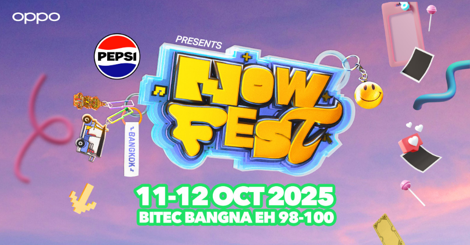 แล้วมาสร้างสีสันและแชร์ความสนุกไปด้วยกัน เตรียมร่างกายให้พร้อม ปลดปล่อยความสนุกสุดเหวี่ยงร่วมเป็นส่วนหนึ่งของความมันส์ครั้งนี้ ห้ามพลาดกับการเก็บภาพความประทับใจให้เต็มที่กับ OPPO ในงาน NOW FEST 2025! เตรียมตัวให้พร้อมรับความมันส์ วันที่ 11 – 12 ตุลาคม 2568 ณ BITEC BANGNA เท่านั้น!